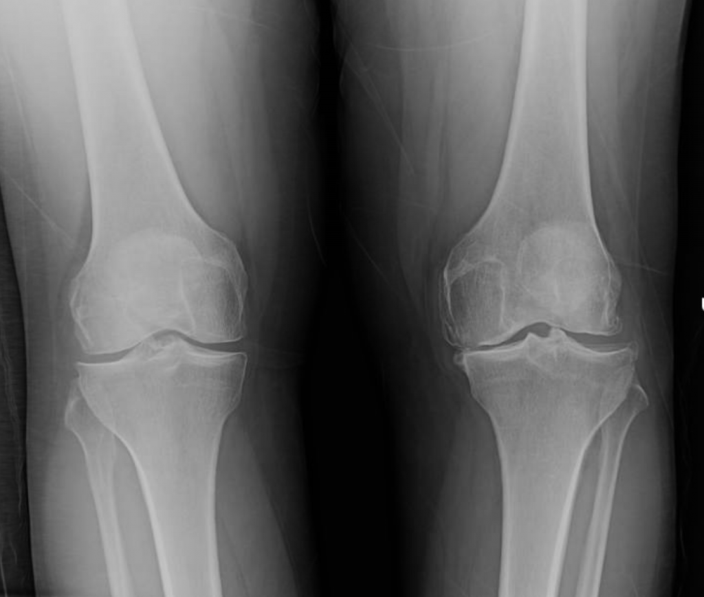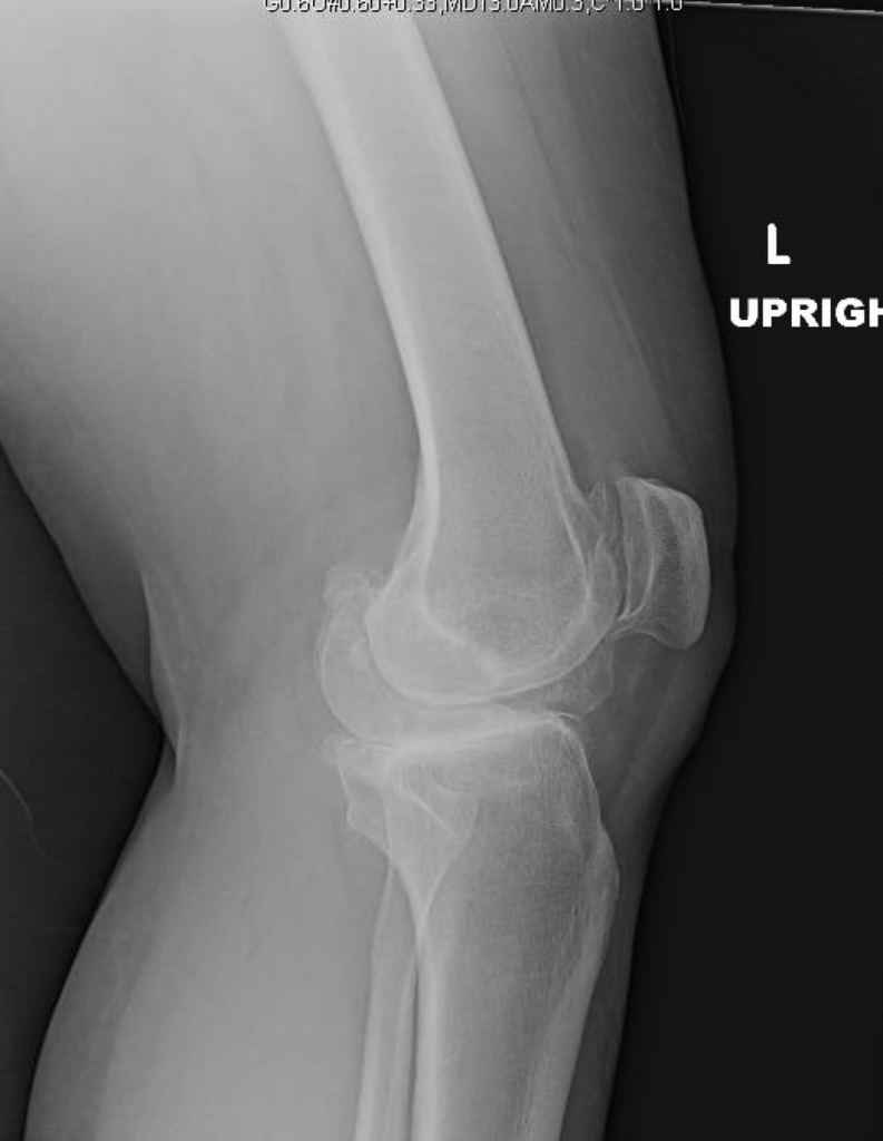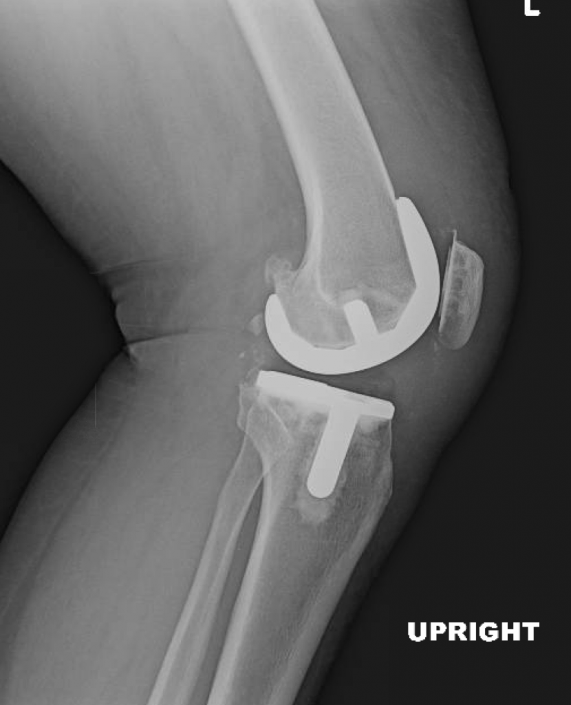 This is a 56 year old female with severe post-trauamtic arthritis of the left knee. She underwent prior knee arthroscopy, which failed. She had continuous pain, a significant limp, and a flexion contracture of 15 degrees.