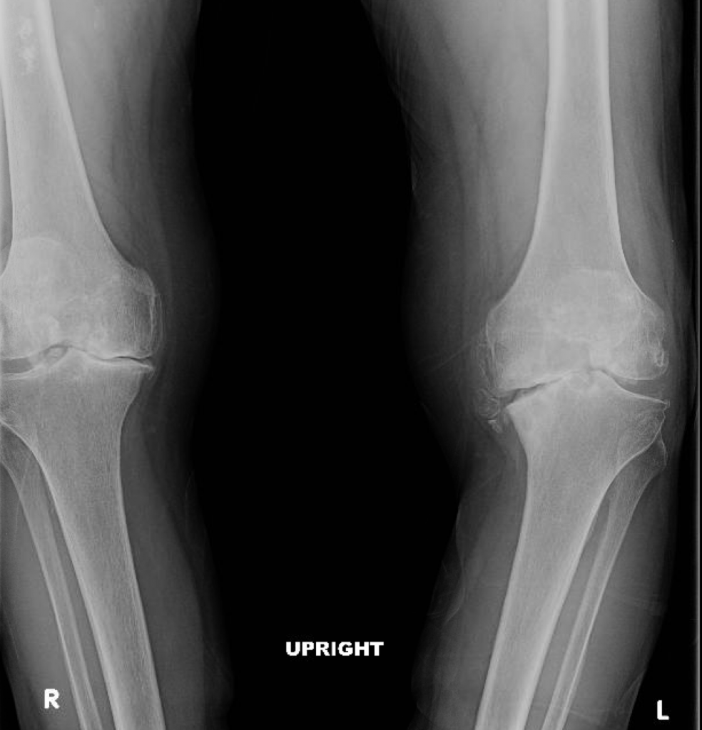 This is an 81 year old female who presented with end stage left knee arthritis and a severe varus (bow legged) deformity. She walked with a lateral thrust but had good range of motion.